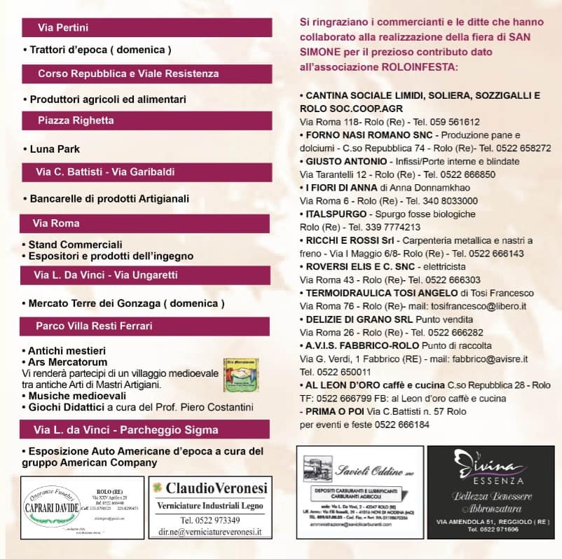 ASS. ROLOINFESTA cell 380 7667988 Rossi Giorgio cell 339 3237126 Posta elettronica roloinfesta@virgilio.it
